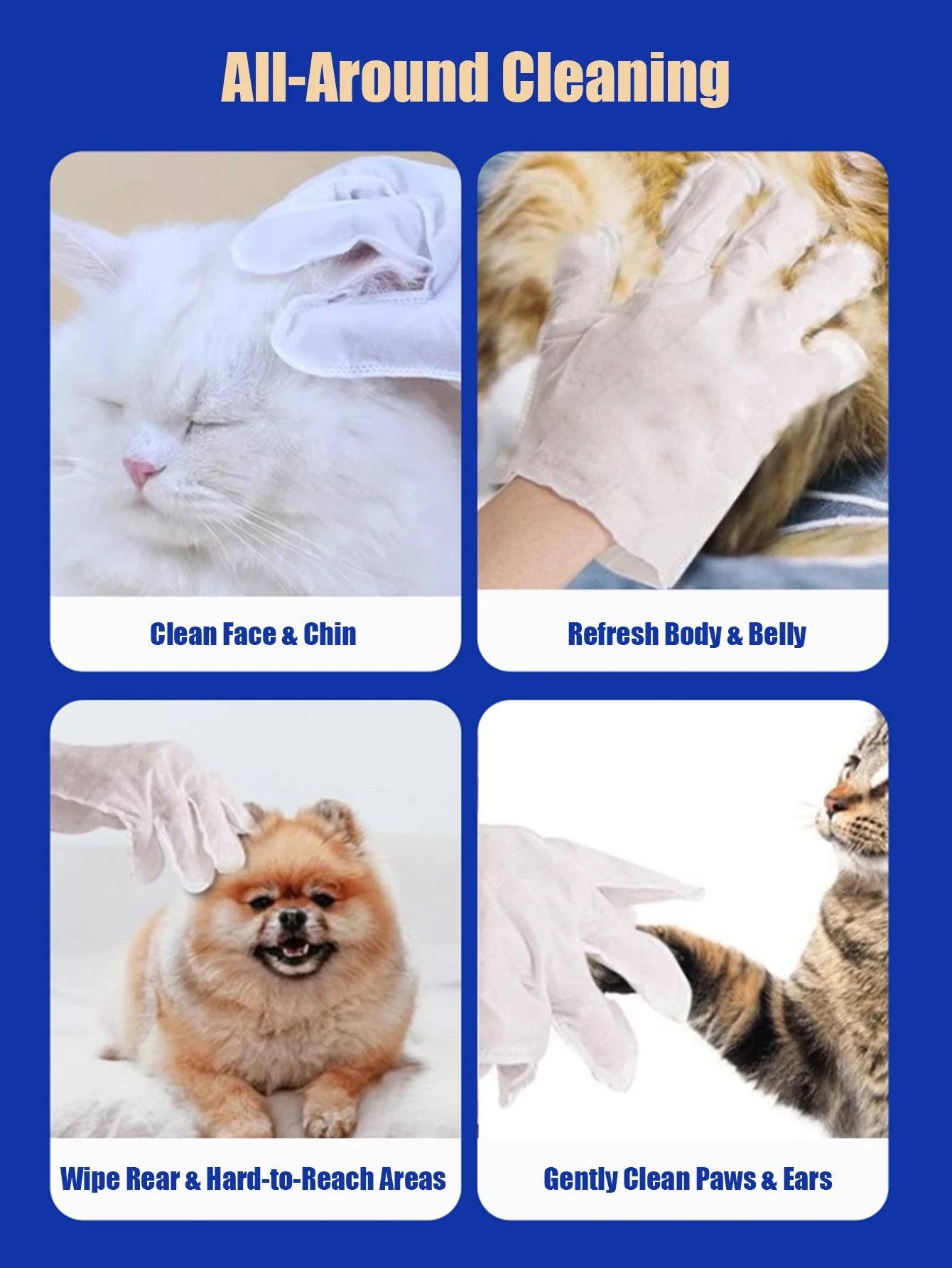 12 Pcs Pet Cleaning Gloves Waterless Bath Deodorizing Wipes Reusable Wash Mitts for Grooming Cats And Dogs Home Travel Use