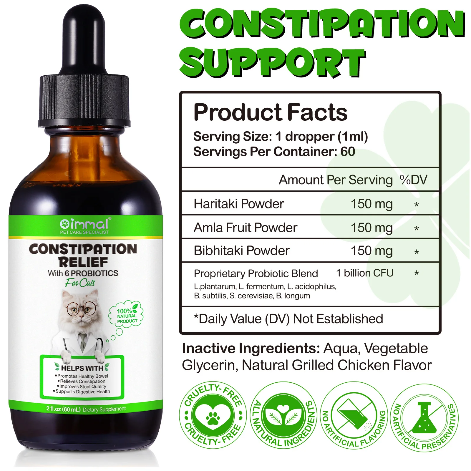 Cat Laxative Constipation Relief Support with 6 Probiotics Promotes Healthy Bowel Improve Stool Quality Support Digestive Health