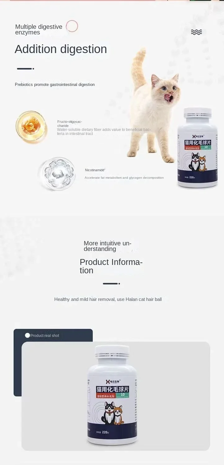 Fur removing hairball cat anti-hair removal anti-vomiting fattening nutritional supplement 220 pieces vomiting hair conditioning
