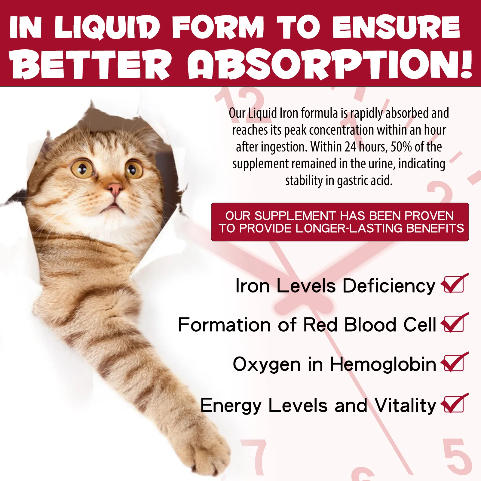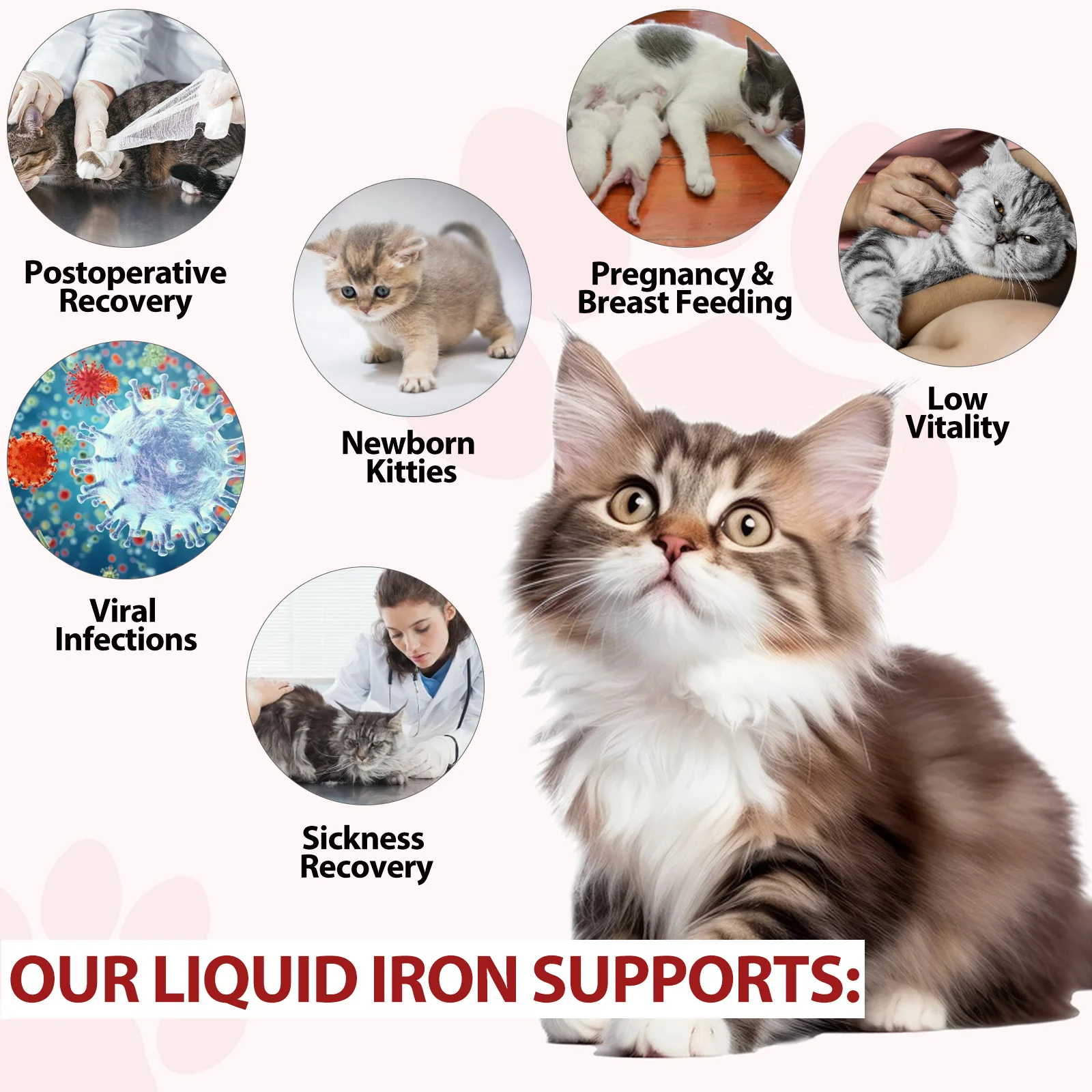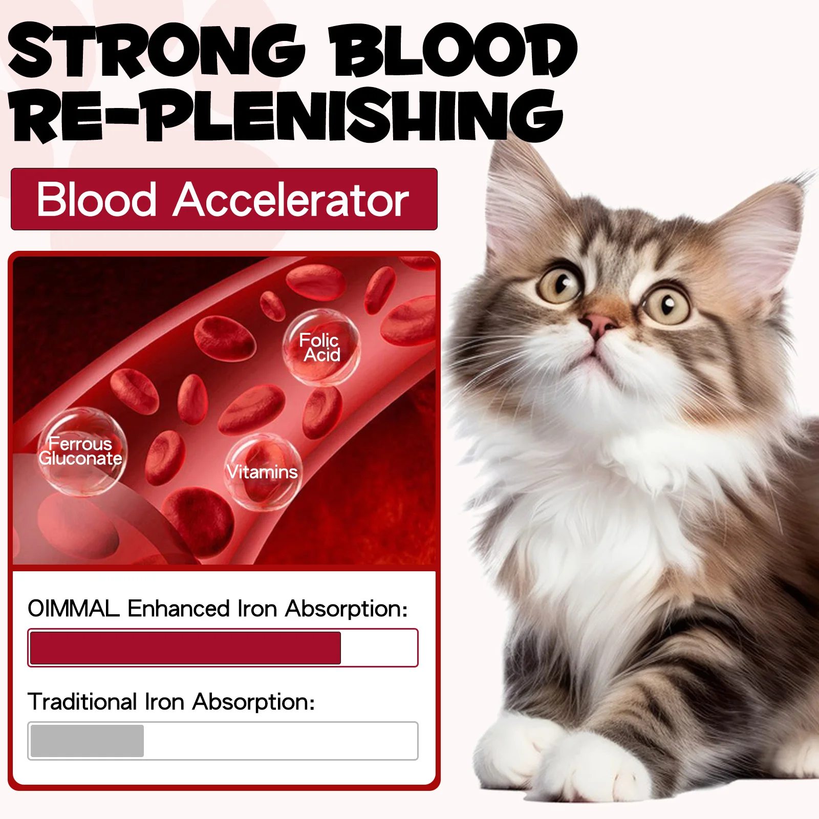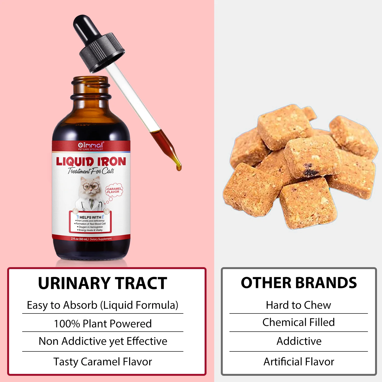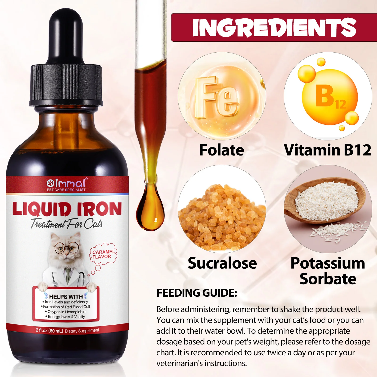 Liquid Iron Caramel Flavor Treatment for Cats Helps with Iron Levels Deficiency Formation of Red Blood Cell Oxygen in Hemoglobin