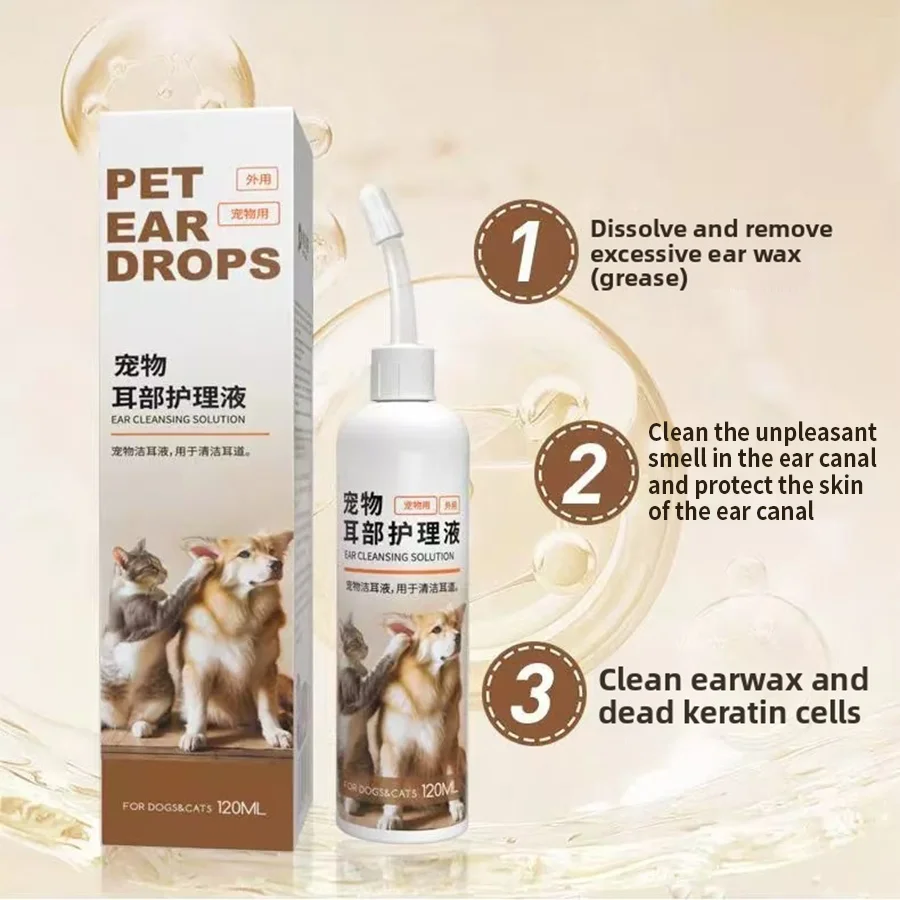 PetClear Pet Ear Care Solution 120ml Ear Cleaner Mite Removal Ear Drops Pet Ear Cleaning Products